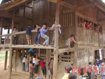 新教學樓嚴重威脅到了師生們的安全,隨即,該教學樓停止使用。但是,停止使用后該校師生卻沒有了上課的地方。于是,只好在當地村民家以每個月 100 元的租金租了兩間大房子上課。但這仍不是長久之計,不到半年,學校承受不了租房的費用。經過老師們對木質老教學樓的一番整理,全體師生又遷到了 13 年前他們上課的危房。
