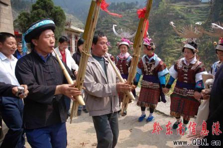 凱里市舟溪鎮新光村是一個遠近聞名的苗族“蘆笙村”,該村制作民族樂器蘆笙已有400多年歷史,幾乎家家戶戶都會制作。自上世紀90年代起,村民們利用農閑時間制作的蘆笙遠銷日本、美國及東南亞等國家和地區。僅2006年一年,全村制作蘆笙5萬余把,銷售總收入超過150萬元。如今,村民們制作蘆笙都是接訂單制作,不愁銷路,每天前來村寨提貨的外地商戶絡繹不絕,村民足不出戶靠制作蘆笙走上了致富路。