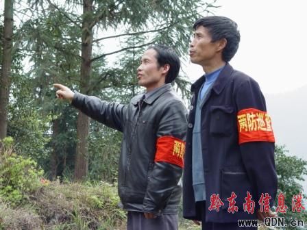 本港訊 (記者 楊文斌 實習記者 孫玉霞)4月4日至4月6日,是今年國家法定假日的第一個清明“小長假”,錦屏縣委宣傳部、林業局、農業局、教育系統等縣直屬機關數千人卻放棄了春游祭祖的大好時機,自愿加入到森林防火,村寨防火工作中去。在各個入村路口,入山路口都張貼防火宣傳標語,安排專人蹬點執勤,沿線巡查,嚴禁攜帶火源上山掃墓。據悉,該縣清明期間沒有發生一例火災事故。(圖為該縣東莊小學和固本中學教師楊系標、范華光在青山界路口執勤時的情景)