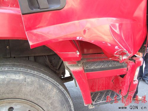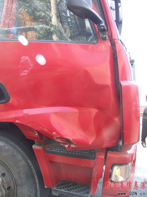 本港訊 12月3日中午,一輛車牌號為貴J504??的東風乘龍大貨車與一輛車牌號為貴H169??的東風山霸王小貨車相撞,東風乘龍大貨車車頭部右側門嚴重受損。