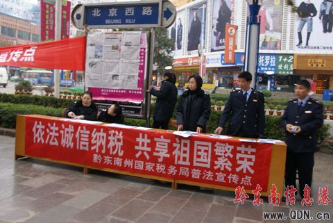 12月4日,凱里市大十字中心集中開(kāi)展法制宣傳活動(dòng),設(shè)立宣傳咨詢(xún)點(diǎn)為群眾答疑解惑。司法局、州法治辦、州國(guó)稅局、州檢察院、州公安局、州林業(yè)局、市教育局、市禁毒辦、大十字街道、人事勞動(dòng)和社會(huì)保障局等各部門(mén)的工作人員向市民發(fā)放各方面法律知識(shí)宣傳手冊(cè),提高市民的法制觀念和依法自我保護(hù)的意識(shí)。為促進(jìn)城市建設(shè),構(gòu)建社會(huì)主義和諧社會(huì),營(yíng)造良好的法制環(huán)境。(楊懿 攝影報(bào)道)