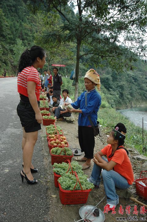 本港訊 8月8日,貴州雷山縣丹江鎮桃子寨葡萄熟了,過往客人前往購買,當地苗族群眾喜獲豐收,每戶收入達5000元。(吳興權 攝影報道)