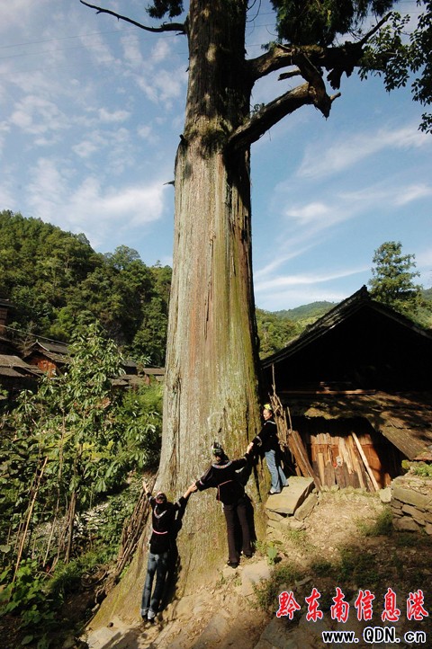 本港訊 (特約記者 陳沛亮 攝影報道)雷公山國家級自然保護區境內的雷山縣方祥鄉格頭村,有一棵胸圍7.6 米,直徑2.42米,樹齡1000多年的禿杉,需6個人才能合。解放前,禿杉王旁邊有一糧倉被土匪搶糧時放火燒毀,樹干起火,由于當地苗族群眾及時撲救,至今仍生機盎然。