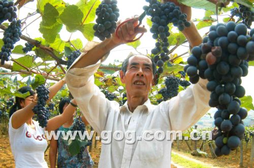 據金黔在線消息 施秉縣牛大場鎮紫金村農民蒲世華通過學習種植技術,從外引進葡萄新品種,在家發展種植業。目前,他家已種有葡萄11畝,今年可收入5萬元。