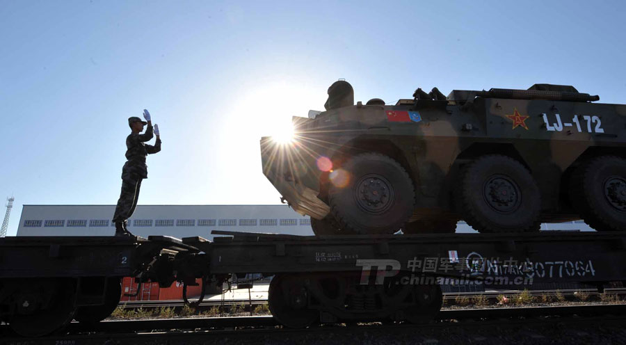 隨著軍列一聲長鳴,中方陸軍戰斗群第一梯隊9月5日晚于新疆阿拉山口駛出國門,進入哈薩克斯坦境內,參加“和平使命-2010”聯合軍演。這是中國軍隊第二次跨境遠程投送兵力參加上合聯演。