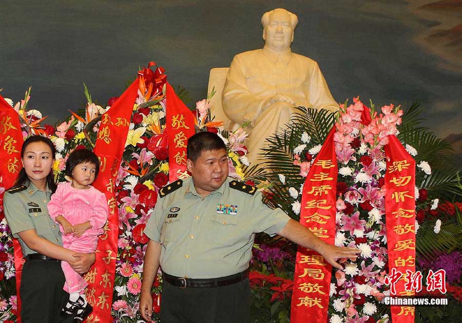 9月9日是毛澤東逝世34周年紀念日。當日上午,毛澤東的孫子、剛剛晉升為解放軍少將的毛新宇與夫人劉濱,帶著兩歲的女兒毛甜懿到位于北京天安門廣場的毛主席紀念堂敬獻鮮花