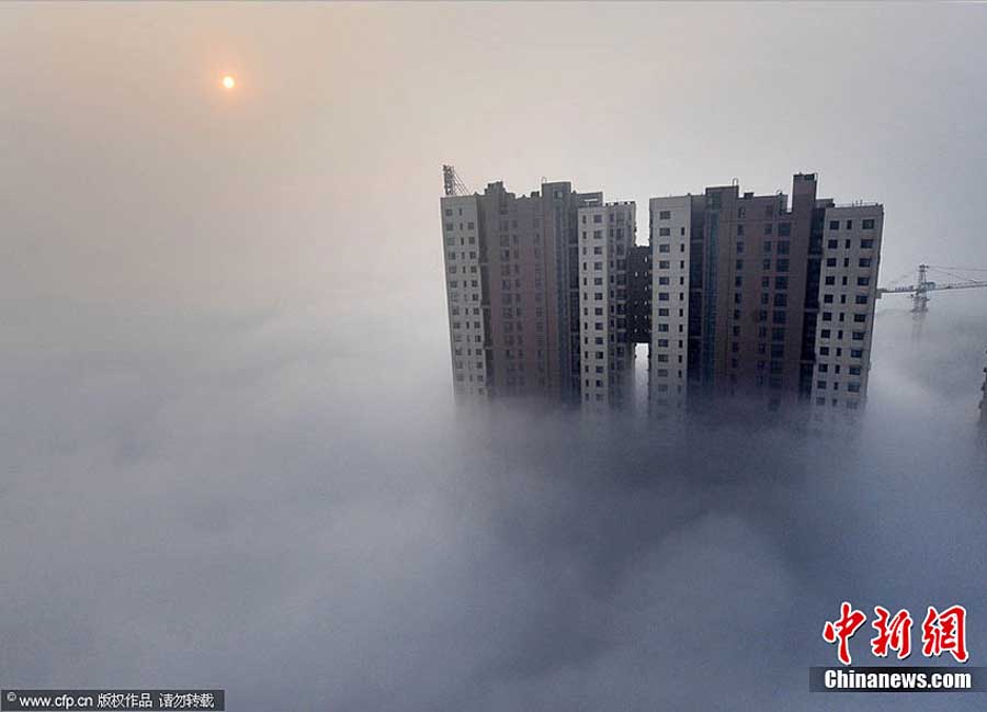10月9日早上6點多,一場罕見的“平流霧”襲擊合肥。合肥城市的建筑掩映在濃霧中異常壯觀。