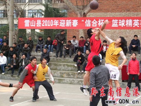 本港訊 (特約記者 張希才 攝影報道)為推動全民健身活動的廣泛開展,增強廣大人民群眾的身體健康,豐富群眾的文化生活。2月20日至23日,雷山縣新春“信合杯”籃球精英賽活動在縣委球場隆重舉行。來自縣直機關企事業單位和鄉村農民的10支代表100名運動員參加了比賽。圖為激烈的籃球比賽現場。