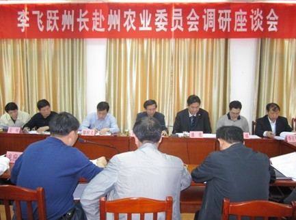 據黔東南政府網消息 5月11日,州長李飛躍在副州長潘亮、州政府秘書長騰昭義及州編辦、人事局、財政局、公產辦等相關部門負責人的陪同下,到州農業委員會對機構改革和農業農村工作開展情況進行調研。州農業委員會黨組書記尹亮、主任楊黎等新一屆班子成員參加了座談會。會上,楊黎主任就整合后的州農業委員會機構改革工作情況、農業和農村工作運行情況、當前存在的主要困難和問題以及急需解決的事項向調研組成員作了匯報。