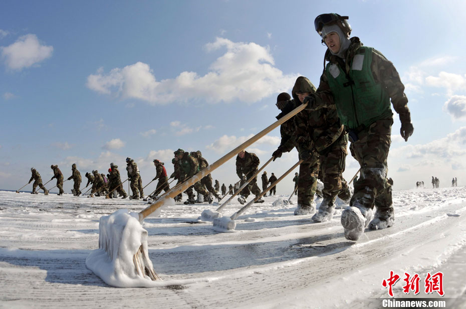 2011年3月23日,美國海軍士兵對參與了日本地震救災(zāi)的“羅納德·里根”號航空母艦及飛機進行大清洗,以消除潛在的核輻射污染威脅。