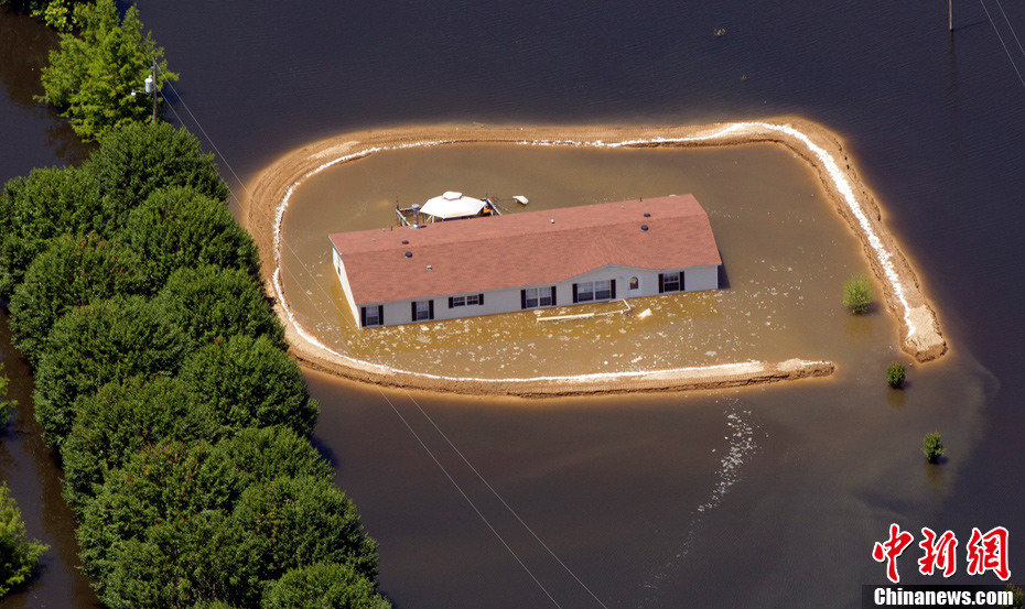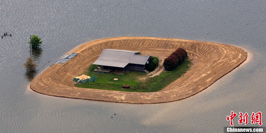 近日,美國南部密西西比河因暴雨和融冰水位暴漲,威脅沿河多州。圖為在密西西比河支流亞祖河沿岸,居民用沙土在自家院落和農田周圍筑起堤壩,保護家園免遭洪水侵襲。