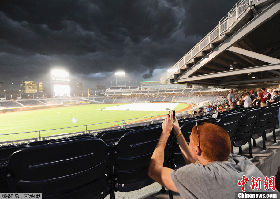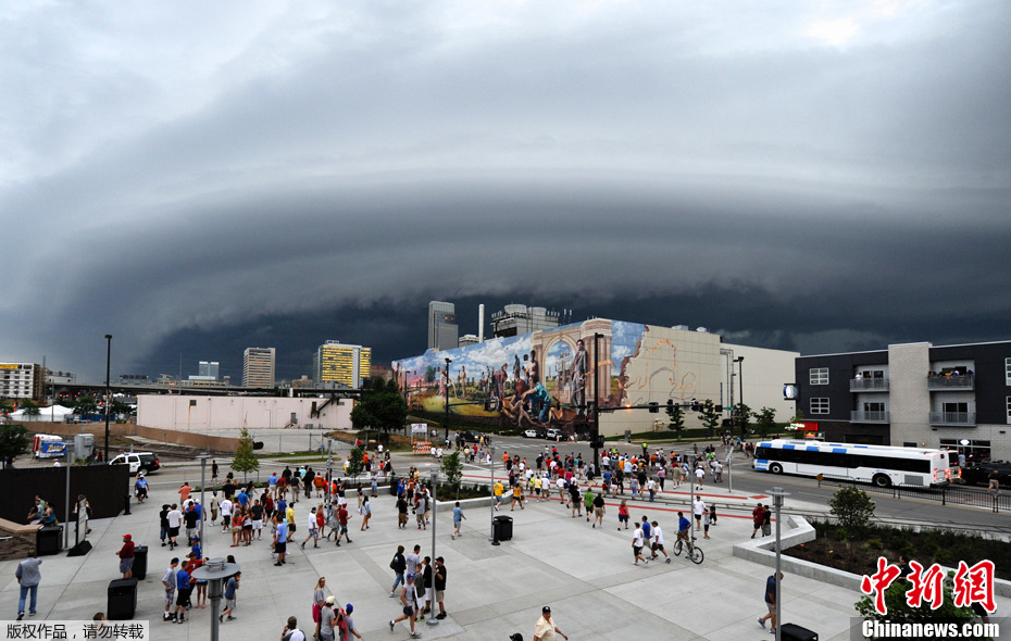 6月20日,美國內布拉斯加州的奧馬哈市遭遇“黑云壓城”,厚重的烏云伴隨著降雨和強風襲擊了該市。