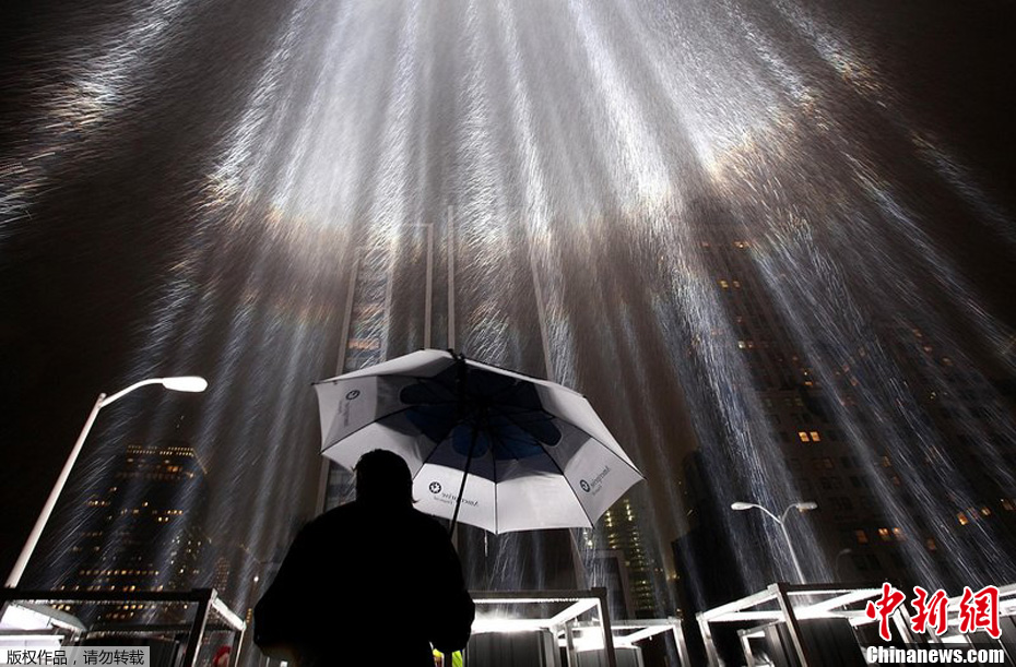 9月5日,在德國北部城市漢諾威,一名男子站在一座裝配了彩燈的風力發電機前。這套燈光裝置由法國藝術家帕特里克·雷諾設計,在2000年漢諾威世博會時亮相。根據設計原理,彩燈的能源由風力發電機提供,并且風力越大,燈光越亮。
