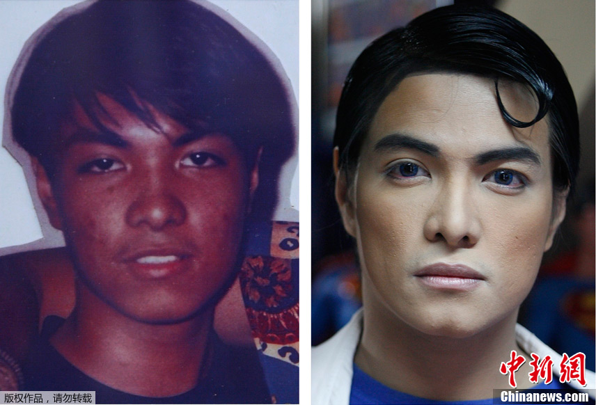 10月12日,菲律賓卡蘭巴(Calamba),赫伯特·查韋斯(Herbert Chavez)身著超人服飾在家中擺姿勢拍照。為使自己更像超人,查韋斯多年來對他的鼻子、臉頰、下巴、大腿甚至皮膚等部位進(jìn)行了多次整容手術(shù),最終他越來越接近偶像超人的模樣,但原來的那個自己已經(jīng)“面目全非”。