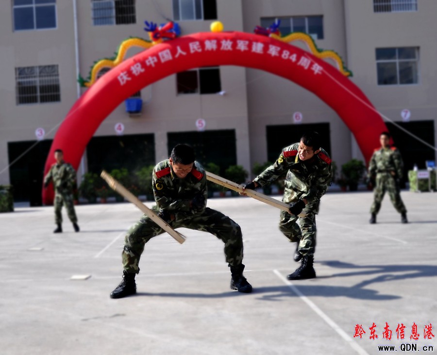 8月1日,武警黔東南支隊官兵舉行了特種戰(zhàn)術(shù)動作、應(yīng)急棍術(shù)、綜合格斗術(shù)等軍事匯報演練科目慶祝中國人民解放軍建軍84周年活動。