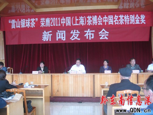 5月26日,“雷山銀球茶”榮膺2011中國(上海)茶博會中國名茶特別金獎新聞發布會在雷山縣人民政府舉行。雷山縣相關單位負責人及黔東南州各媒體應邀參加本次發布會。