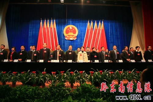 上午10時,大會主持人龍義立宣布:三穗縣第十六屆人民代表大會第一次會議開幕,全體起立,雄壯的中華人民共和國國歌響徹會場。