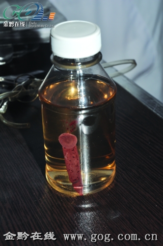 經(jīng)確認(rèn),這是一條前尖后鈍的螞蟥,后吸盤上還有5個(gè)猩紅的吸血點(diǎn)。背部呈黑棕色,整個(gè)身長達(dá)5公分、寬0.5公分。離開鼻腔后,這條螞蟥顯得非常不高興,翻滾跳騰,醫(yī)生將螞蟥裝入一個(gè)密封塑料瓶,用酒精浸泡封存。