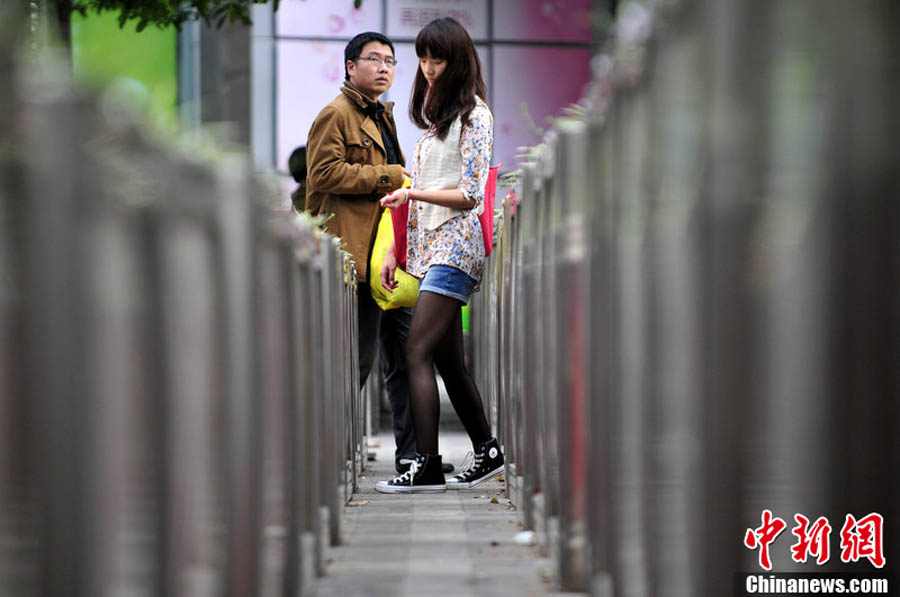 2012年4月11日,昆明,春暖花開,女性穿著高跟鞋和各種顏色的絲襪走在街頭。黑白 攝 圖片來源:CFP視覺中國
