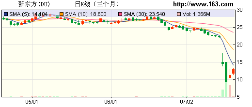此前,新東方先后因?yàn)閂IE結(jié)構(gòu)調(diào)整遭調(diào)查和被渾水質(zhì)疑連續(xù)兩個(gè)交易日大跌35%;其股價(jià)從7月16日收盤(pán)的22.26美元跌至周三收盤(pán)的9.5美元,累計(jì)跌幅超57%。