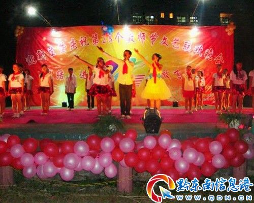 九月,金色的九月,更是收獲的九月,6日晚伴隨著熱情奔放的《sorry sorry》舞蹈,“團結奮進•放飛夢想”——從江職中教師節晚會在學校大操場拉開序幕,縣教育局等相關部門和職業技術學校領導班子成員及全體師生近五百人參加,共慶第二十八個教師節。