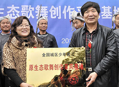 12月4日,筆者從從江縣相關(guān)部門獲悉。日前,全國(guó)城區(qū)少年宮原生態(tài)歌舞創(chuàng)作采風(fēng)基地授牌儀式在從江縣岜沙苗寨舉行。全國(guó)城區(qū)少年宮常務(wù)理事主席王振民代表該研究會(huì)為岜沙景區(qū)授牌,研究會(huì)隨行領(lǐng)導(dǎo)及從江縣人民政府副縣長(zhǎng)劉利民等領(lǐng)導(dǎo)參加了授牌儀式。