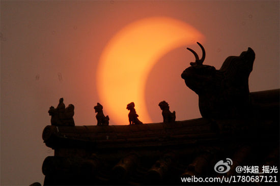 新浪微博網友@張超_搖光 北京故宮拍攝的日偏食