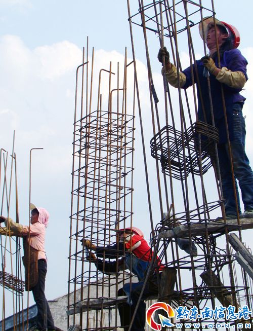 圖為近日女子們正在錦屏縣鐘靈鄉政府的建筑工地上捆扎鋼精的情景