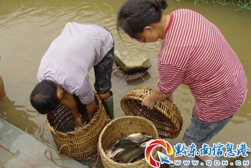 連日來,在隆里古城城郊田間,到處都看到正在趕往自家的農田放水抓田魚的繁忙景象,來往的村民都相互轉告自家田魚豐收的喜訊,相互邀請親朋好友作客吃魚,村民們個個都是喜笑顏開,陶醉在了喜慶年年有余(魚)的歡慶的季節里。圖為隆里古城李家夫婦在溪頭清洗田魚淤泥的繁忙情景。(石福濤 攝)