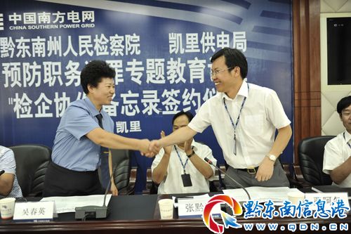 8月31日,貴州省黔東南州人民檢察院與貴州凱里供電局共同簽訂“檢企協作”備忘錄,旨在進一步加強相互間的溝通與交流,強化對企業黨員、干部的預防職務犯罪教育工作,做到警鐘長鳴、筑牢反腐倡廉思想防線,有效促進凱里電網與地方經濟發展。