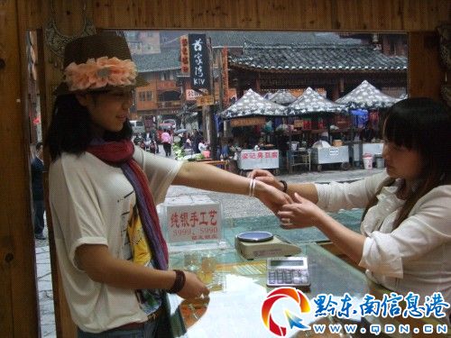 進入景區的游客,有的在民族博物館參觀,有的在西江景區拍攝整個苗寨風光,有的租用苗族盛裝穿著留影,有的到古街購買銀飾品和民族特色產品等等。(張希才 李杰)