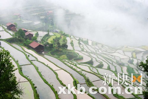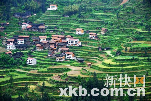 5月7日在貴州省黔東南苗族侗族自治州錦屏縣境內拍攝的梯田美景。時值立夏時節,位于貴州省錦屏縣大山深處固本鄉苗莊與宰格苗寨交界處的梯田蓄水充盈,層層疊疊,宛如玉帶,美不勝收。新華社發(楊文斌 攝)