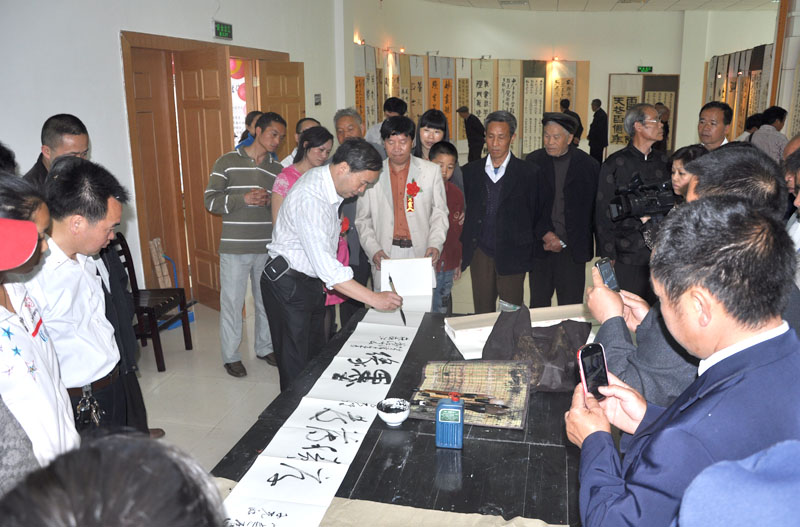 展會上,來自黔東南州的和麻江縣的書畫藝術家們滿懷激情,揮毫潑墨,書寫出的一幅幅珍貴墨寶帶給大家行云流水般的感覺。
