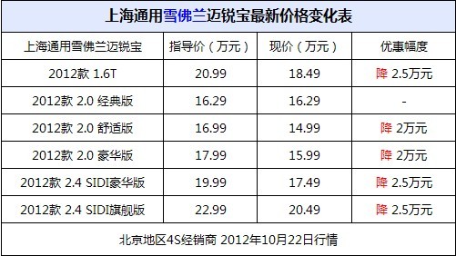 近日,筆者走訪了北京地區上海通用雪佛蘭4S店了解到,店內2012款邁銳寶部分車型現車在售,顏色方面還算豐富。售價方面,時下購車最高現金優惠2.5萬元。感興趣的朋友可以到店賞車試駕。