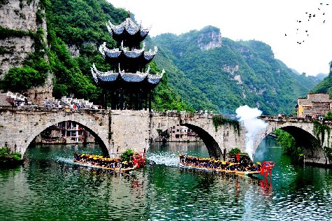 黔東南人民政府網訊 鑼鼓擂動 龍舟馳騁,近日,筆者在鎮遠古城舞陽河上看到的情景。鎮遠素有“龍舟之鄉”的美譽,傳統的龍舟節已經是29屆,每年端午節,鎮遠古城就會在舞陽河上舉行龍舟比賽,一到端午節臨近,城關各個社區自覺組隊,全縣民眾廣泛關注和熱衷參與,端午節這天,整個古城已經成為鎮遠各民族的狂歡節日。