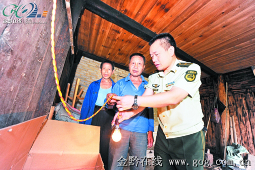 在中寨民族村寨,駐村干部花銀輝教“五保戶”李玉登安全使用電器。