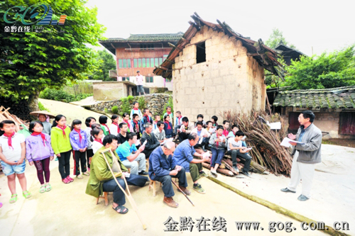 雷山至西江沿線正在打造民族旅游村寨。營上村駐村干部藤東偉給村民講解旅游區移民搬遷相關法律知識。