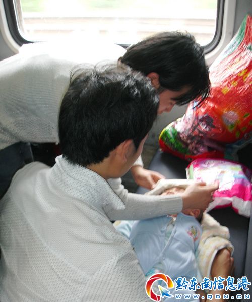 飛馳的列車上,一名出生大約5個多月的嬰兒突發(fā)疾病,當(dāng)時(shí)車上又沒有醫(yī)生,情況危急,為了挽救嬰兒的生命,幾位旅客和凱里鐵路職工正在為躺在座位上的一個5個多月的嬰兒忙著量體溫、敷毛巾,并安慰身邊那對年輕的父母,經(jīng)過搶救,嬰兒轉(zhuǎn)危為安。