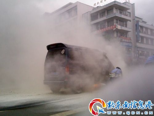 6月28日上午10時08分左右在凱里市北京東路永豐十字路口發生一起汽車自燃事故,所幸事故未造成人員傷亡。