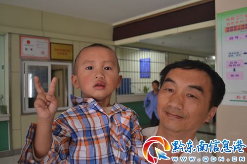 患者家屬李玉武抱著拆線手術后的兒子內心流露無比的感動