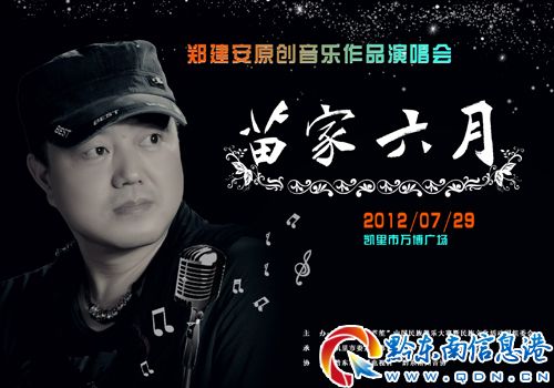 鄭建安:目前,全國觀眾比較熟悉的和我自己比較滿意的歌曲有全國優秀流行歌曲創作大賽獲獎作品《苗家六月》、電影《苗鄉情》插曲《說不出的痛》、電影《女兵還鄉》主題曲《想念你成了災》、央視6.1慈善晚會主題歌《心靈渴望》等等,這些歌曲在央視等媒體平臺展示后,我覺得這是對我20余年音樂創作的一種肯定和鼓勵,同時我覺得肩上的擔子更重了,下一步計劃多寫一些關于我們貴州題材的作品,更好的宣傳黔東南、宣傳貴州。在這里,我首先要感謝的是凱里學院院長曾羽先生和我的搭檔黃昌松先生、楊長文先生,是他們的歌詞一直感動著我,才給予了我更多的創作源泉和創作激情;其次要感謝的是我的同學曾憲達,是他為我早期歌曲嘔心瀝血的編曲和精益求精的錄混,才有了現在大家聽到的《苗家六月》、《今夜我不想離開》等歌曲;第三,我要感謝的是阿幼朵、雷艷、張歡、陳珠珠、李東蔭、楊恒、青竹、楊家昭等優秀歌手,他們出色的演繹了我很多的歌曲,才使得我的作品被大家喜愛!