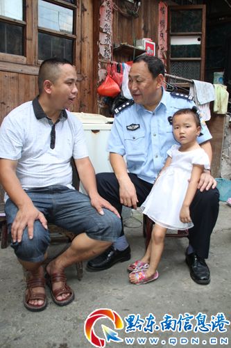 圖為政委劉貴榮(右一)深入轄區(qū)回訪事故受害者的情景。 (黔東南州交警支隊宣傳科 唐光新/攝)