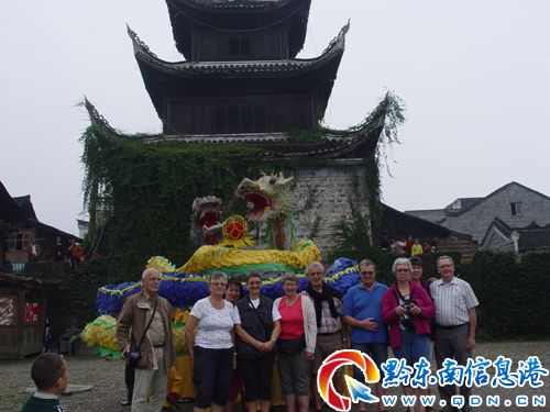 筆者從部門獲悉,中秋國慶期間,錦屏多舉措確保“雙節”平安,促“旅游”大豐收。全縣共接待游客8.89萬人次,同比增長14.7%,平均一日游客9548人次,同比增長10%,過夜游客1.25人次,同比增長55.4%,實現旅游總收入1776.42萬元,同比增長51%。圖為國外游客在六百年軍屯古堡隆里古城觀看雙龍戲珠并合影情景。(李必樺 歐漢法 文/圖)