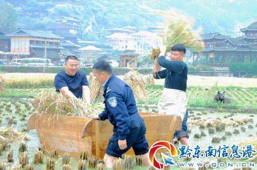 10月8日,派出所民警為西江鎮(zhèn)東引村五組81歲高齡的宋國忠老人家搶收稻谷,受到當(dāng)?shù)厝罕姾迷u。
