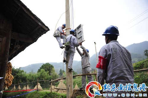 10月27日,記者在貴州凱里供電局“百村萬(wàn)戶”臺(tái)區(qū)改造惠民工程臺(tái)江縣革一鄉(xiāng)田壩村施工現(xiàn)場(chǎng)看到,一派繁忙的工作場(chǎng)面,該局實(shí)施的“百村萬(wàn)戶”臺(tái)區(qū)改造惠民工程正在熱火朝天有效推進(jìn)。據(jù)了解,2012年該局實(shí)施的“百村萬(wàn)戶”臺(tái)區(qū)改造惠民工程投資400余萬(wàn)元,涉及黔東南州51個(gè)行政村、103個(gè)自然村寨的106個(gè)低壓臺(tái)區(qū)進(jìn)行改造,受益農(nóng)戶10299戶,其中木房7392戶。(姚友本 攝)