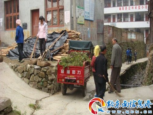 11月1日上午7時,錦屏縣三江鎮合沖村全體村民110余人,背上鐮刀,扛起鋤頭,拿著掃帚,集中于寨頭,對寨上的道路、小溪,學校等公共場所進行全面的大掃除。