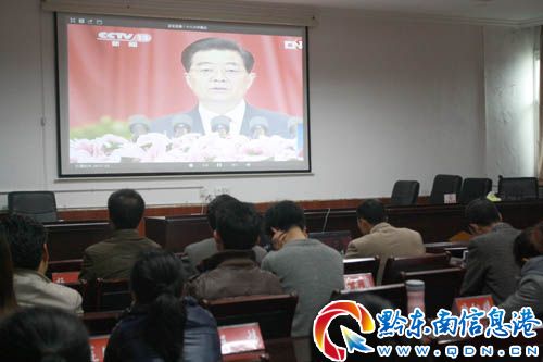 11月8日早上9點, 全局干部職工全體干部職工通過多媒體聚精會神地收看胡錦濤同志作的《堅定不移沿著中國特色社會主義道路前進為全面建成小康社會而奮斗》的報告,會后大家紛紛表示,要認真學習胡錦濤總書記的工作報告,深刻領會內容實質,把學習黨的十八大精神和我們當前的工作實際緊密結合起來,在全局掀起學習黨的十八大精神新高潮,推動人事工作更快更好的發展。(姜巨標 吳育將)