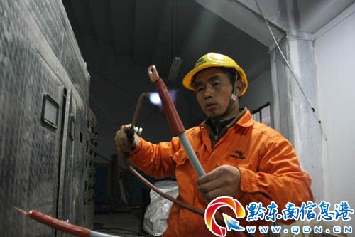 圖為凱里供電局城區(qū)分局配網(wǎng)運(yùn)維班的師傅正在加緊制作加裝變壓器的電纜頭,確保“凱里一節(jié)一會(huì)”安全可靠用電。 (石冰)