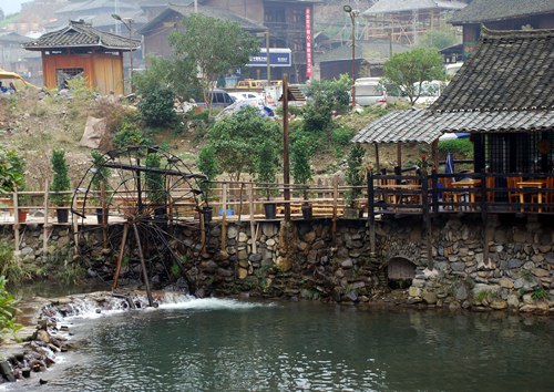 黔東南州當地民居依山而建錯落有致 黔東南州當地人正在用餐 黔東南州民居 黔東南州民居檐下的水車