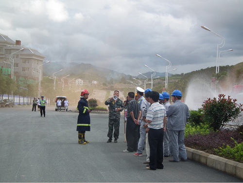 演練主要分為三個階段:第一階段交警及消防部門到場后初步處置。第二階段啟動聯動三穗縣重特大災害事故聯合作戰預案,調集公安、交警、武警、路政、醫院、安監、氣象、環保、供電、民政、文廣、民兵應急分隊到場處置,消防官兵利用破拆工具救出被困者并對泄漏罐體實施堵漏。第三階段是對事故現場進行輸轉、洗消、清洗等無害處理。最后,環保、安監等部門利用儀器對現場的空氣、水源等環境進行評估及檢測,確認現場氯氣濃度已降至安全范圍,此次高速公路氯氣泄漏事故在各單位良好的協作下成功的處置完畢。